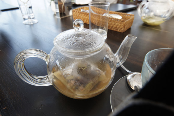 生姜とカルダモンと・・・ ハーブのことはよくわからないので,店の人の説明を聞いて一番ホットというお茶を頼んでみました. 汗ばむ陽気とホッとなお茶,元気の組み合わせです.